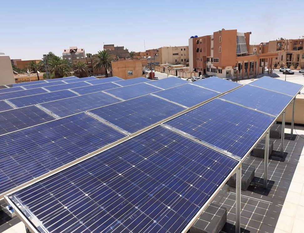 L’agence de la Société Générale Algérie à Hassi Messaoud, en plein désert proche des puits pétroliers doit assurer la continuité énergétique dans un environnement contraignant. Sungy a fait une étude dite en AC et DC coupling avec système de back up pour les besoins vitaux par des batteries lithium.